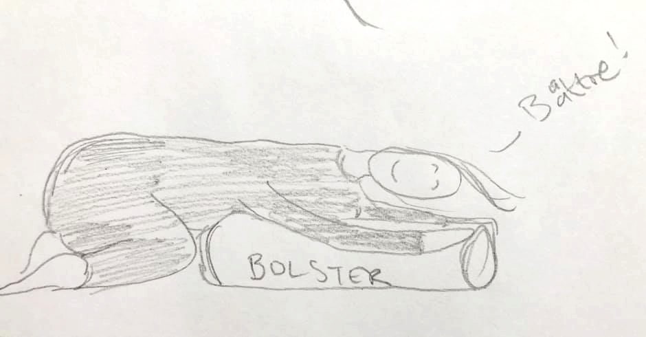 3. Barnets position – den positionen som ska vara så bekväm trycker ihop allt. Usch. Testa det här (du behöver 2-3 block och ett bolster): Lägg ut några block och lägg ett bolster över dem, alternativt endast bolster. Lägg dig över bolstret i en bekväm krama-kudde pose. Skönt!